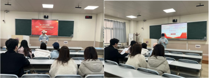 各支部坚持读原著、学原文、悟原理,以分众化、互动性学习提升实效。第一、第六支部开展专题微党课,围绕“中国式现代化”“教育科技人才协同发展”等议题,结合学术科研与学风建设实际,系统解读全会精神丰富内涵;第二支部组织知识问答活动,以全会公报要点、党的创新理论成果为核心内容,通过互动交流深化理解;第三支部紧扣“基层治理现代化”主题开展研讨,结合专业所长探索实践路径;第四、第五支部采用“朋辈分享+案例分析”模式,邀请优秀党员分享学习心得,结合行业发展实例阐释全会精神实践价值。