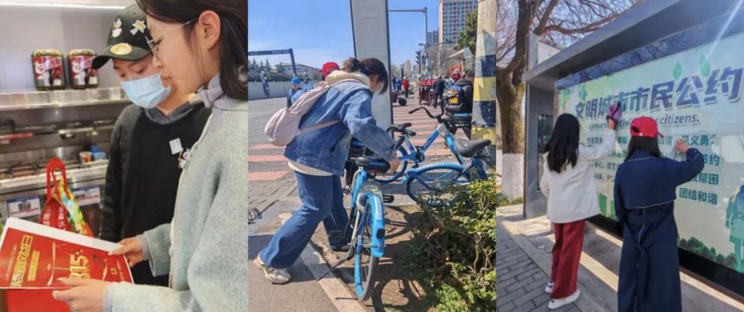 一城之美,始于初心;一城之洁,在于坚守。商学院组织志愿者以“保护城市美颜,促进权益保障”为主题,走上西长安街开展城市志愿服务。清理公交站牌的污渍、铲除顽固小广告,让出行指引清晰醒目;清扫盲道杂物、移除占道障碍,为视障群体筑牢安全防线;走进商铺开展食品检查、后厨参观,普及消费者权益保护知识,守护市民“舌尖上的安全”。志愿者们用双手擦亮城市容颜,用行动传递文明力量,让城市因志愿而更美好。
