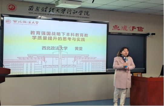 黄雯教授做了题为《教育强国战略下本科教育教学质量提升的思考与实践》,黄雯教授从高等教育发展的前景,专业结构调整,本科专业建设,课堂教学创新、思政课程与课程思政等方面做了详细的解读与论述。互动环节,黄雯教授对师生们提出的问题进行耐心解答。