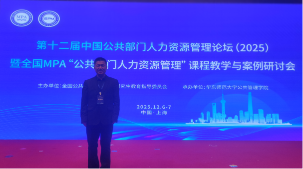 2025年12月6日至7日,第十二届中国公共部门人力资源管理论坛暨全国MPA“公共部门人力资源管理”课程教学与案例研讨会在华东师范大学普陀校区顺利举办。本次会议由全国公共管理专业学位研究生教育指导委员会(以下简称“全国MPA教指委”)主办,华东师范大学公共管理学院承办,会议围绕数智时代公共部门人力资源管理的理论创新、教学改革与实践探索展开深度研讨。我校MPA教育中心主任胡信布老师参加了本研讨会并与与会有关学者进行了沟通交流。