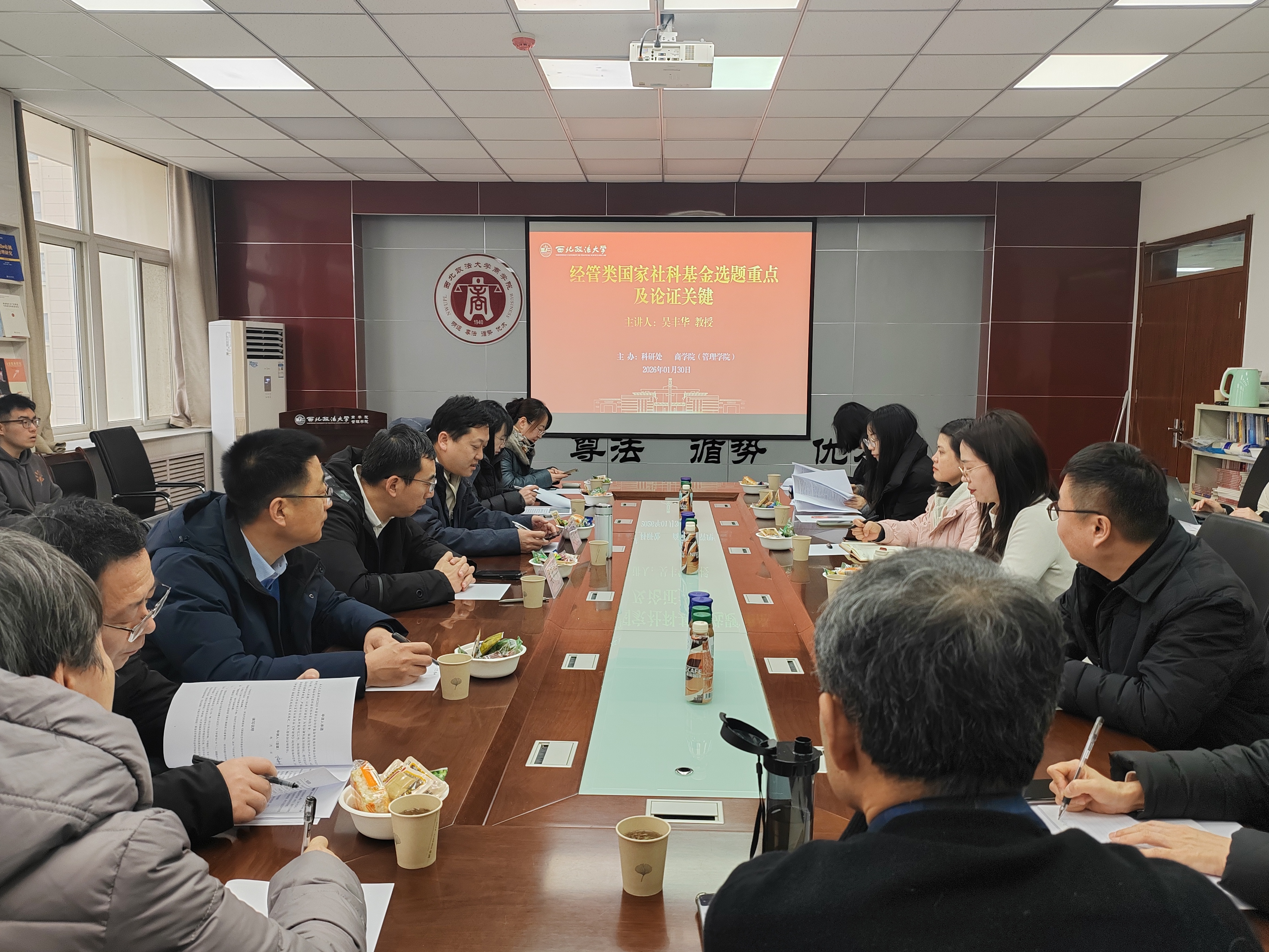 为积极推动2026年科研项目申报工作,提升学院科研项目申报质量。我院与校科研处于1月30日联合举办2026年科研项目申报暨经验交流会。本次会议特邀西北大学经济管理学院吴丰华教授担任主讲嘉宾并进行专题辅导,会议由商学院(管理学院)院长徐京平主持,来自学校相关单位老师参加了会议。